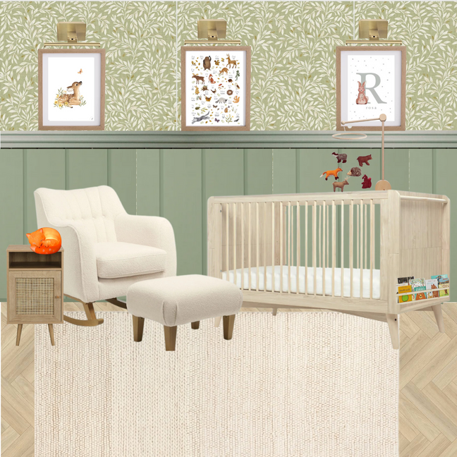 This project is a timeless woodland themed nursery design, using calm colours and patterns and cosy fabrics to feel warm and inviting. Perfect for any baby.