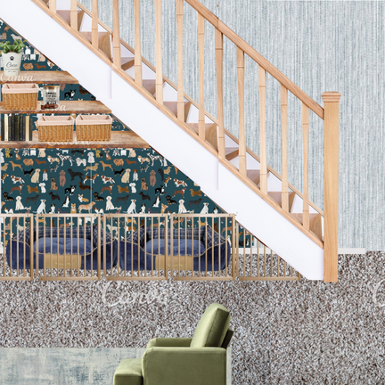 For this project we created a safe space for the dogs under the stairs so that we could get rid of the dogs crates that take up precious space.